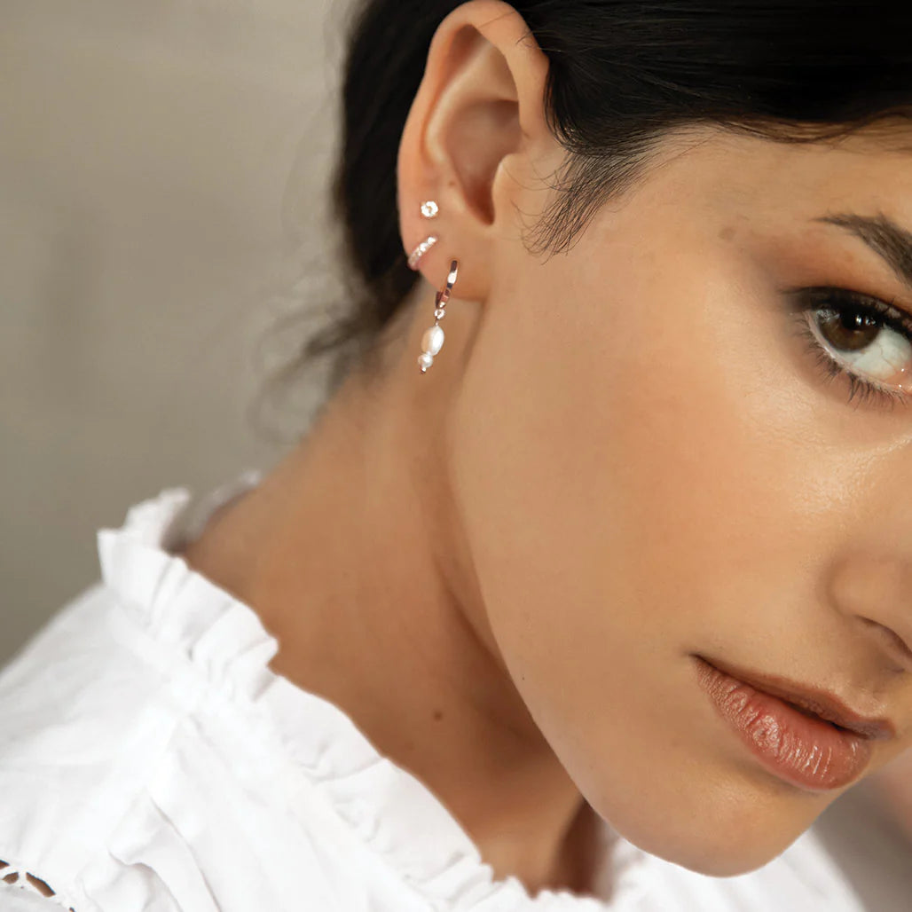 11mm Huggies with Freshwater Pearl detail.