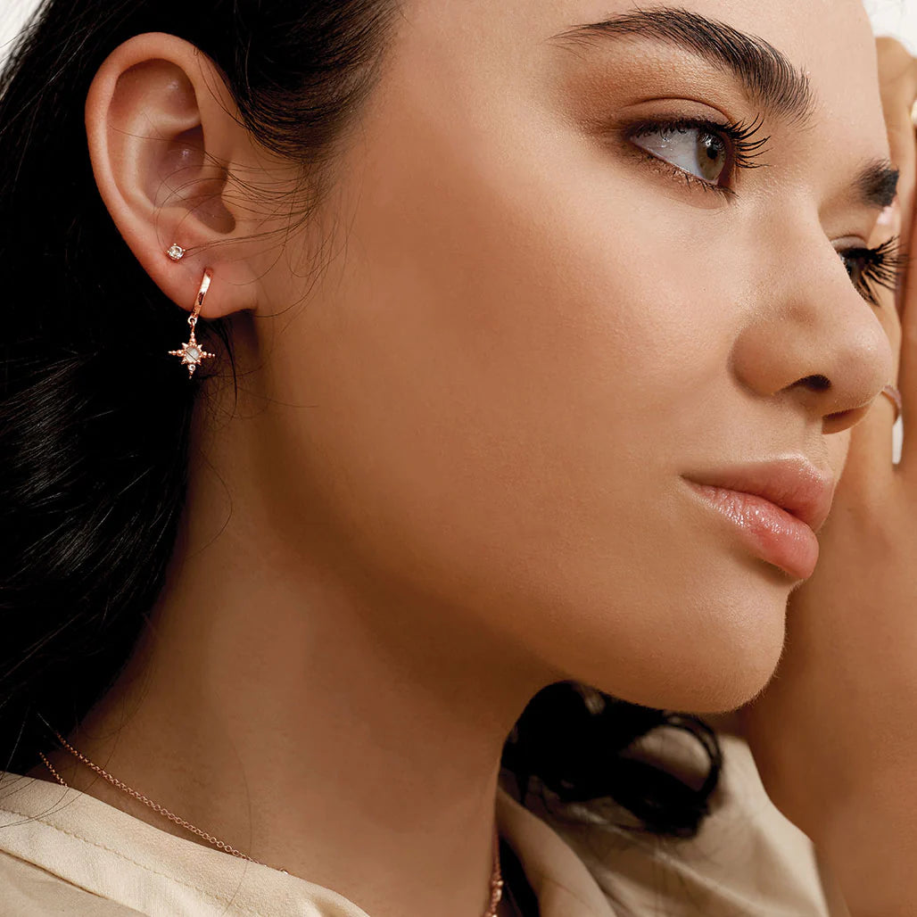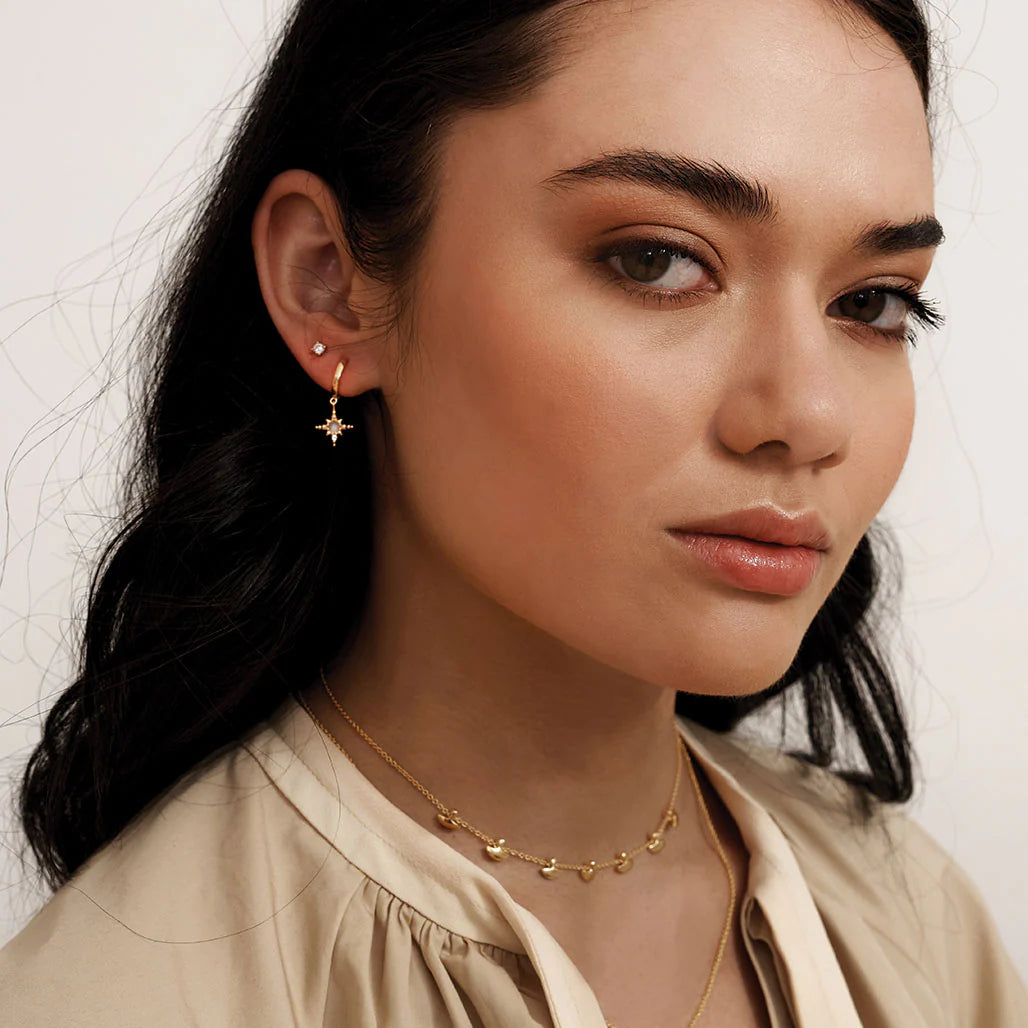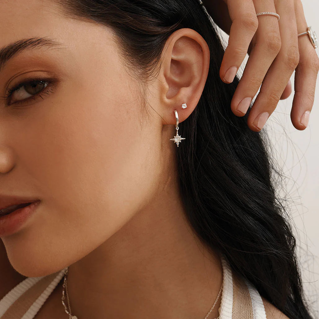 11mm Huggies with hanging star featuring Moonstone and White Topaz.