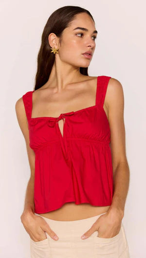 A playful yet timeless staple, the Margot Red Cotton Linen Blend Tie-Front Top is crafted in a bold red hue with feminine details that make it a standout. Featuring wide straps, a front tie detail, and a softly flared hem, it’s the perfect piece to elevate everyday looks. Pair it with denim or a linen mini skirt for an effortlessly chic outfit.