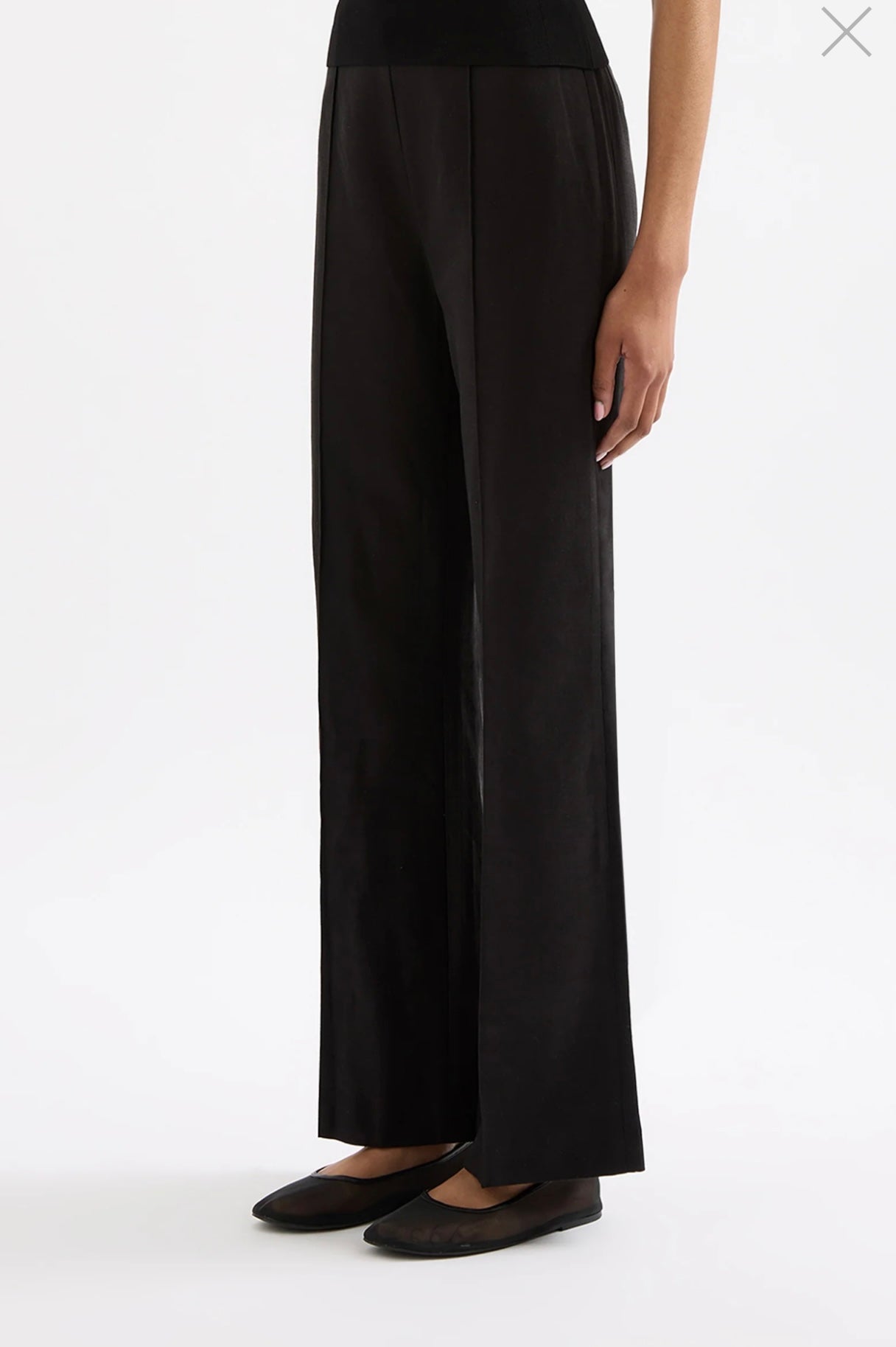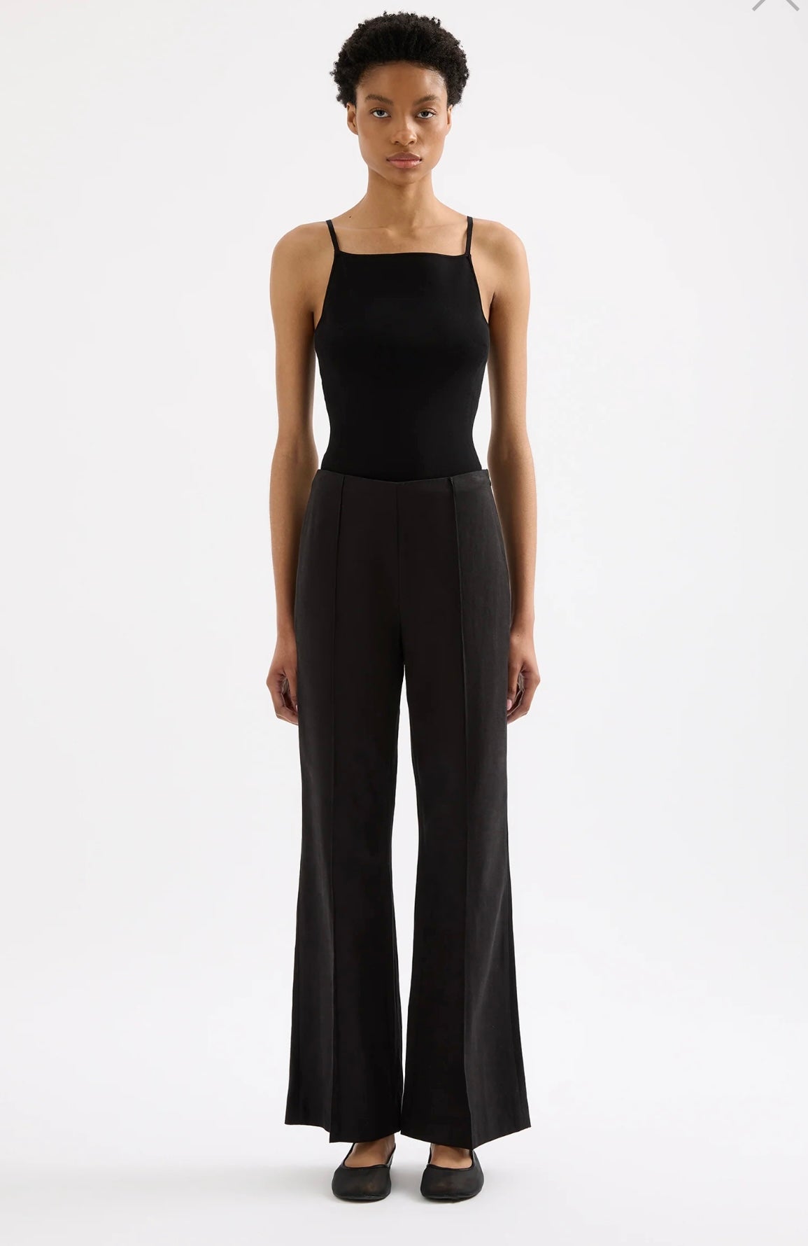 The Tait Pant is made from a mid weight Tencel/cotton fabrication which has a textured hand feel. The silhouette is tailored with a high waisted pant, slim on the thigh and wider at the hem. Features include pin stitch on front leg and side seam zipper.